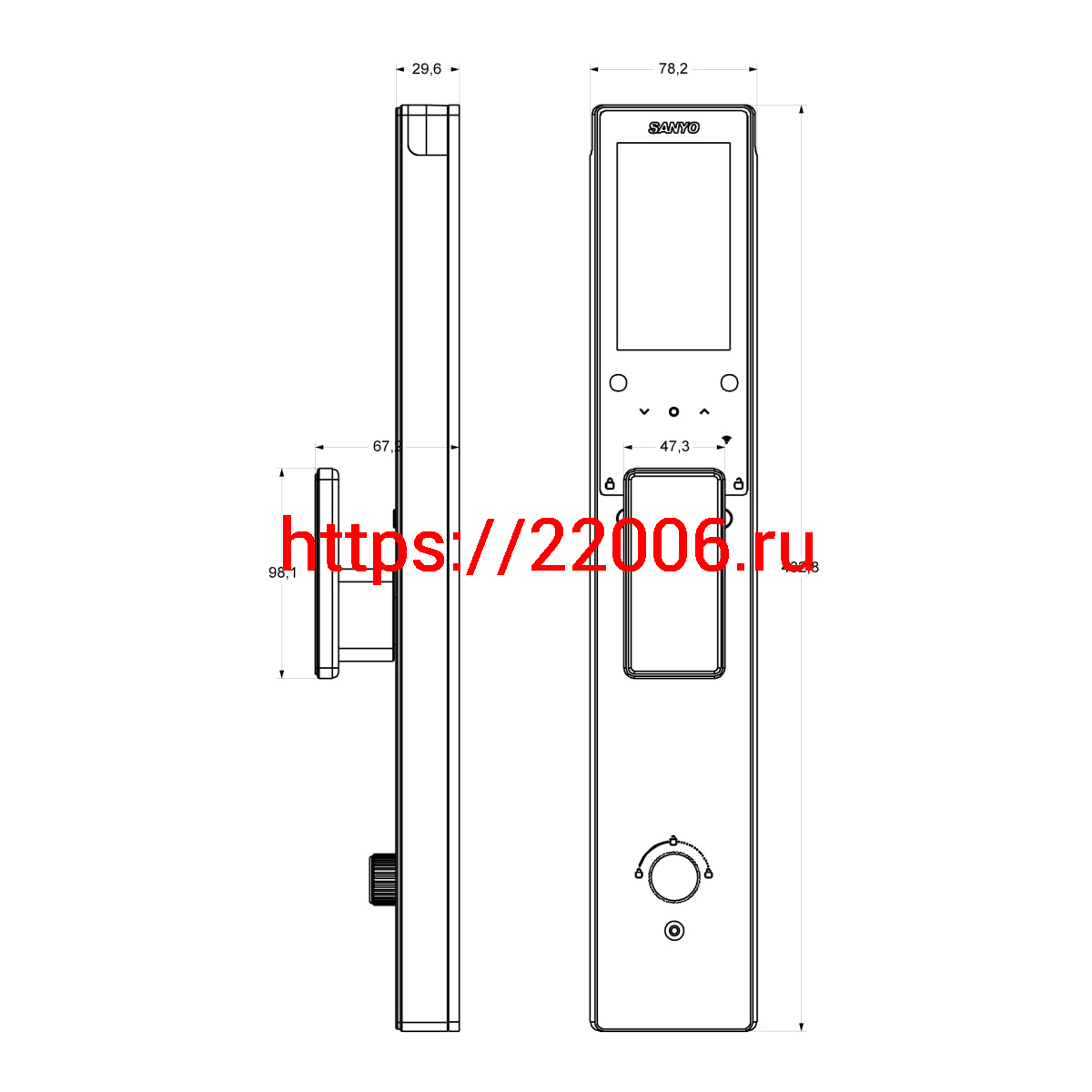 - Электронный замок Sanyo D501 Tuya DM70 с WiFi, ручка скоба 1800 мм, черный в Кургане недорого