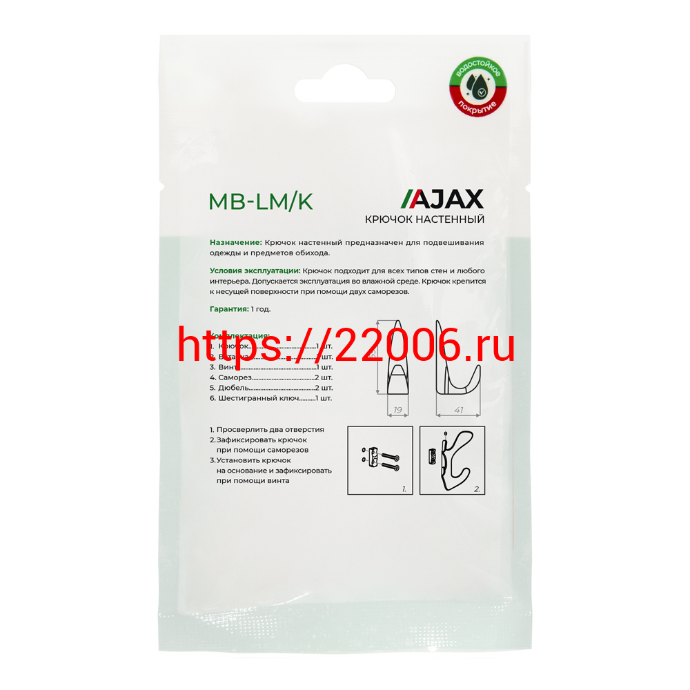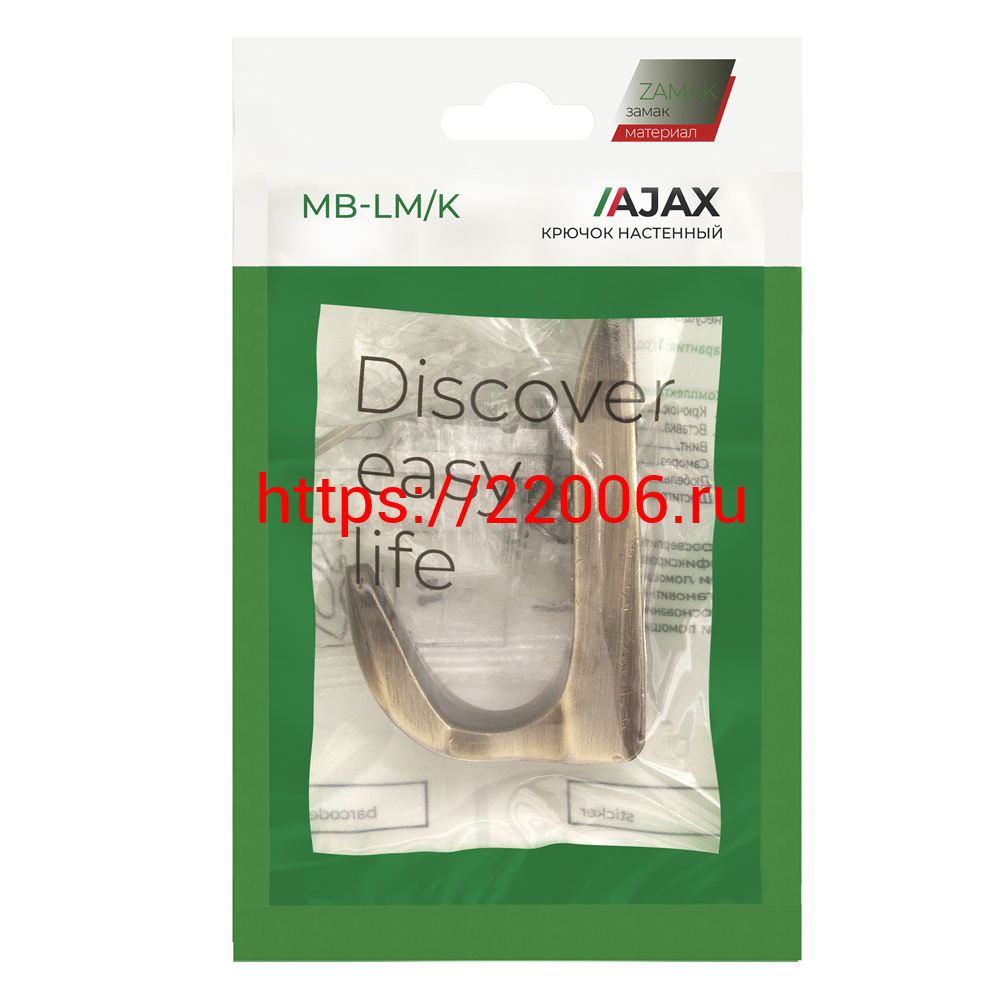 - Крючок Ajax (Аякс) настенный MB-LM/K-002 AB бронза в Кургане недорого
