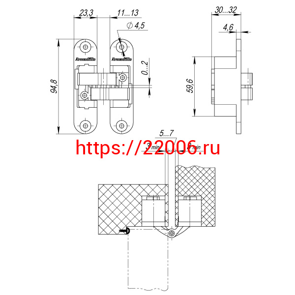 - Петля Armadillo (Армадилло) скрытой установки U3D4200L CP левая (Architect 3D-ACH 40) хром 40 кг в Кургане недорого