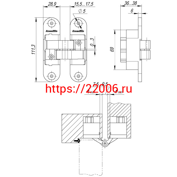 - Петля Armadillo (Армадилло) скрытой установки U3D6200L AB левая (Architect 3D-ACH 60) бронза 60 кг в Кургане недорого
