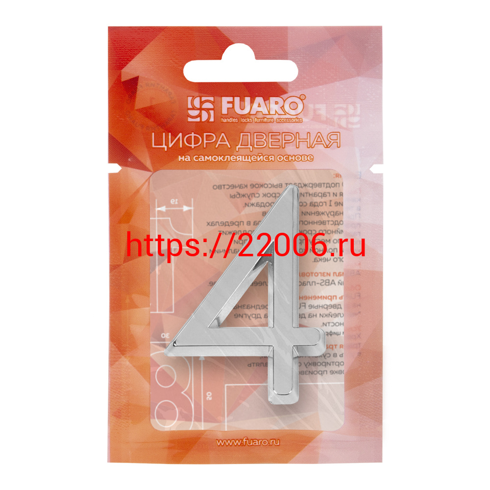 - Цифра Fuaro (Фуаро) "4" самоклеящаяся ABS (50х37) (FUARO) CP хром в Кургане недорого