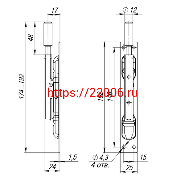 - Задвижка Fuaro (Фуаро) торцевая RIGEL-set/160 D12x60mm (TDB set 160-24) в комплекте с ригелем в Кургане недорого