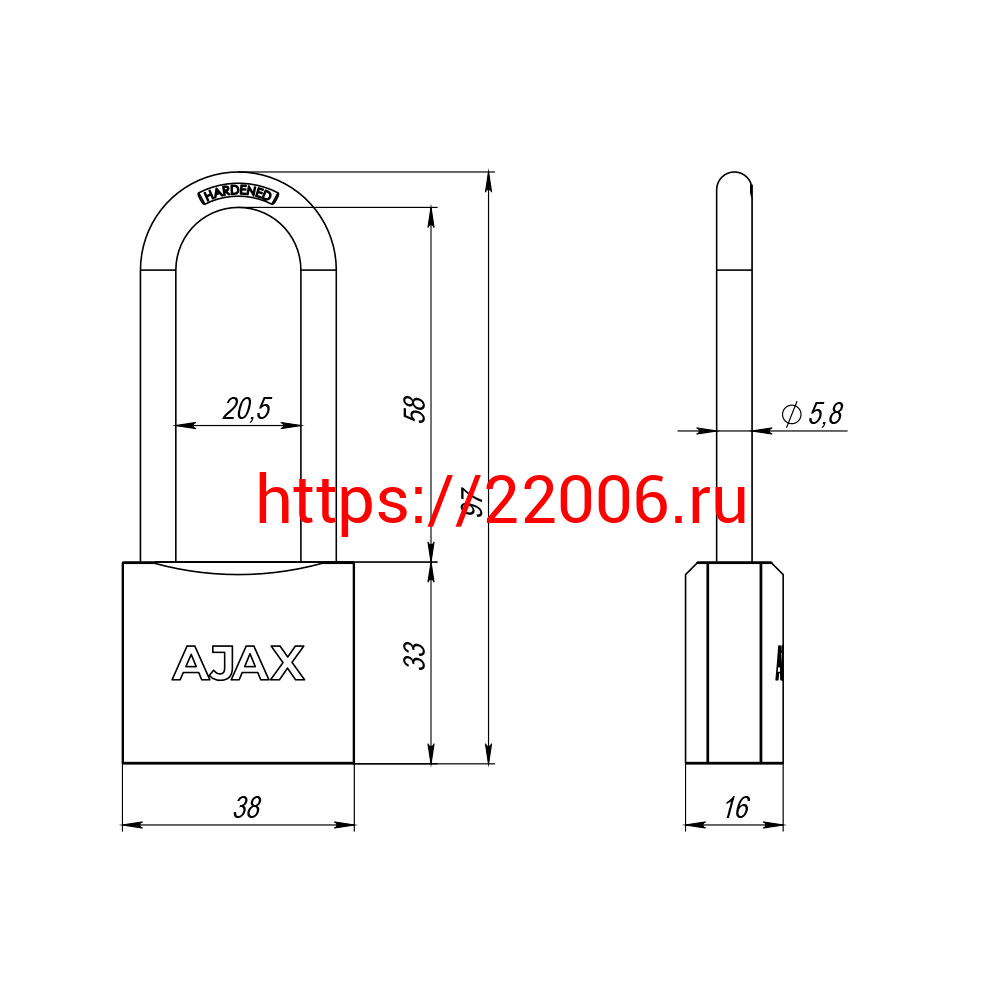 - Замок Ajax (Аякс) навесной PD-0138-L (PD-01-38-L) 3 key англ. в Кургане недорого