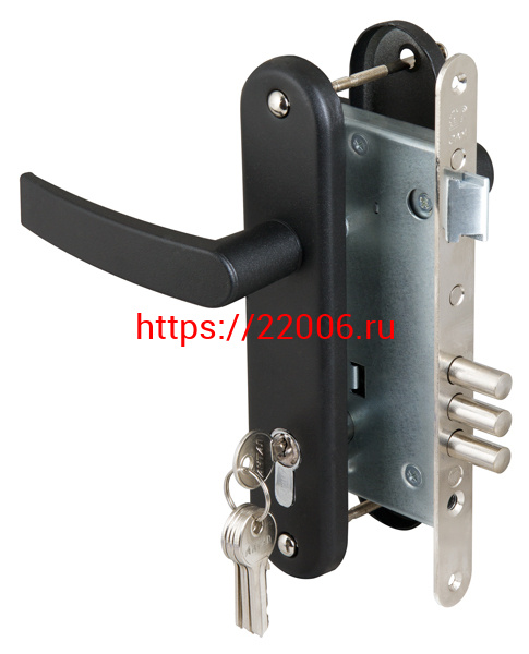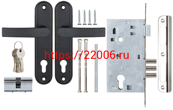 - Замок Sam (Сам) врезной цилиндровый с защёлкой в комплекте с ручкой ЗВ4-3 (черный муар), 5 кл. /78401/ в Кургане недорого