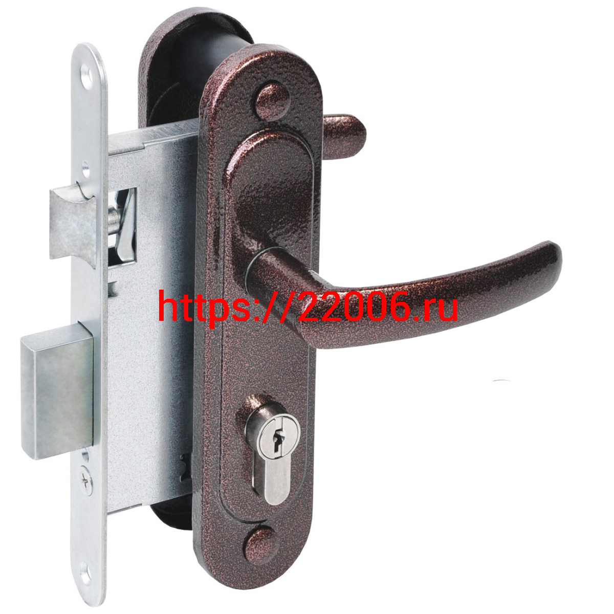 - Замок Absolyute (Абсолют) врезной цилиндровый с защёлкой в комплекте с ручкой ЗВ4.2-08 (медь антик), 4 кл. в Кургане недорого