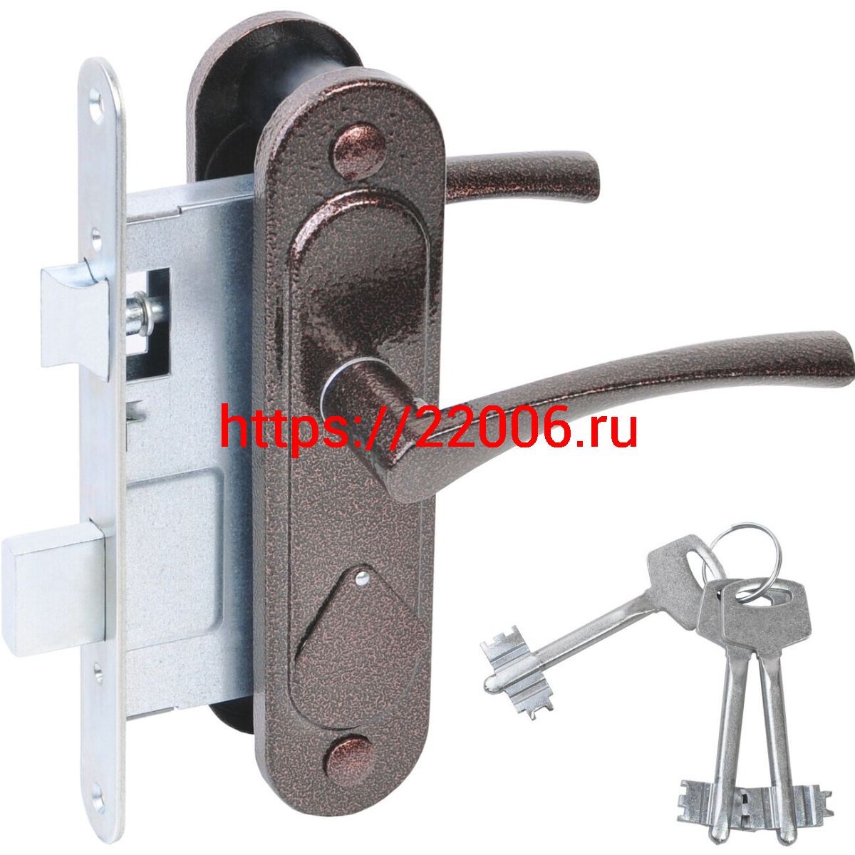 - Замок Absolyute (Абсолют) врезной сувальдный с защёлкой в комплекте с ручкой ЗВ9.2-07 (медь антик), 3 кл. в Кургане недорого