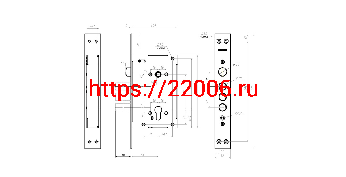 - Корпус Guardian (Гардиан) врезного замка с защёлкой ЗВ 22.11 Т /128:5363/ в Кургане недорого
