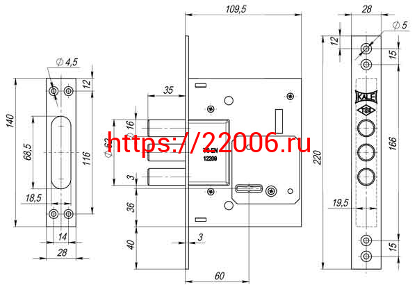 - Замок Kale kilit (Кале килит) врезной сувальдный 257/L (тех. комплектация), 4 кл. (кл. 60 мм) в Кургане недорого