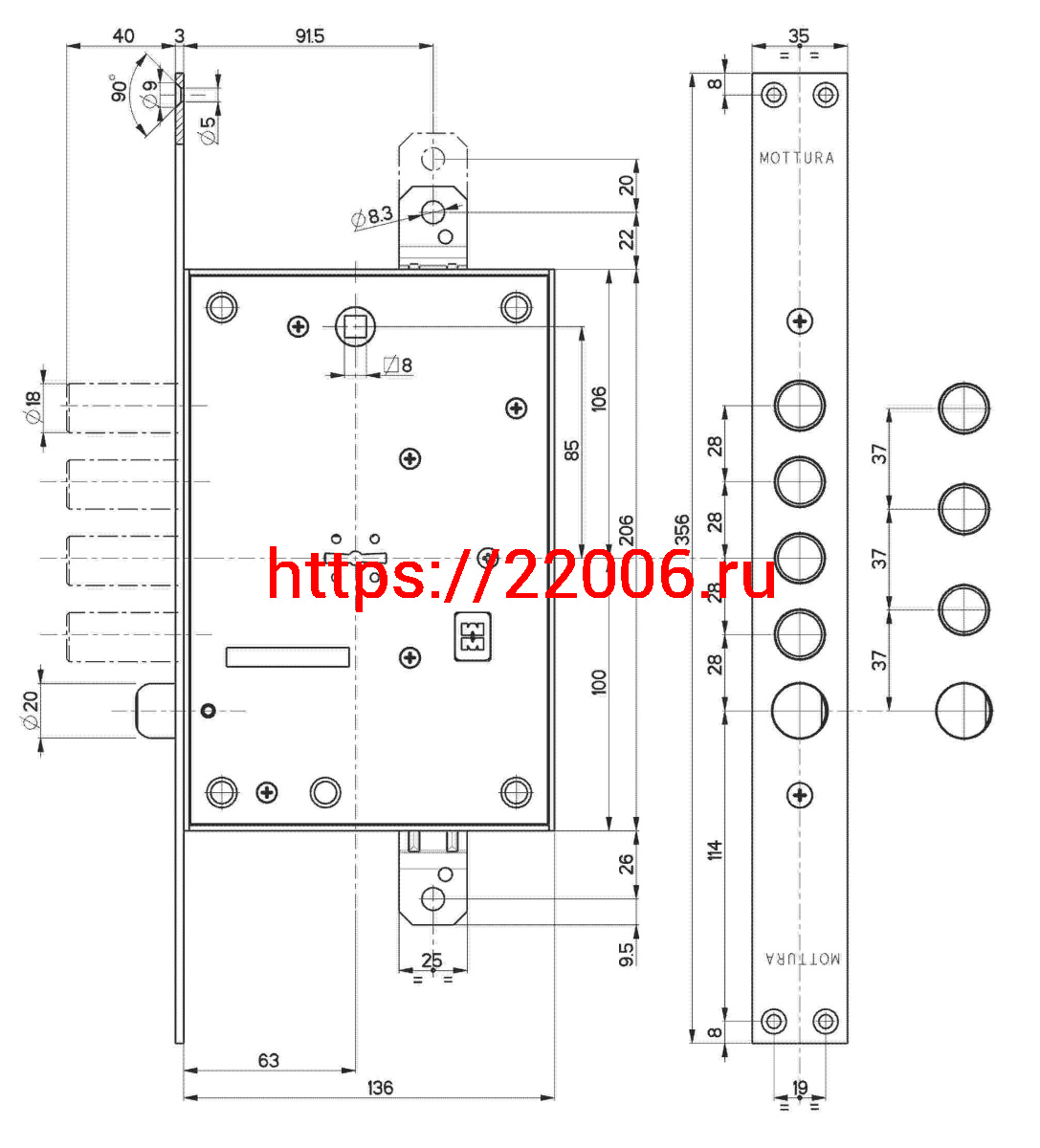 - Замок Mottura (Моттура) врезной сувальдный с защёлкой 52.771, ключ 60 мм, без накл. в Кургане недорого