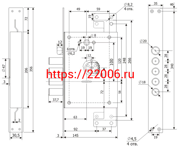 - Врезные электромеханические замки