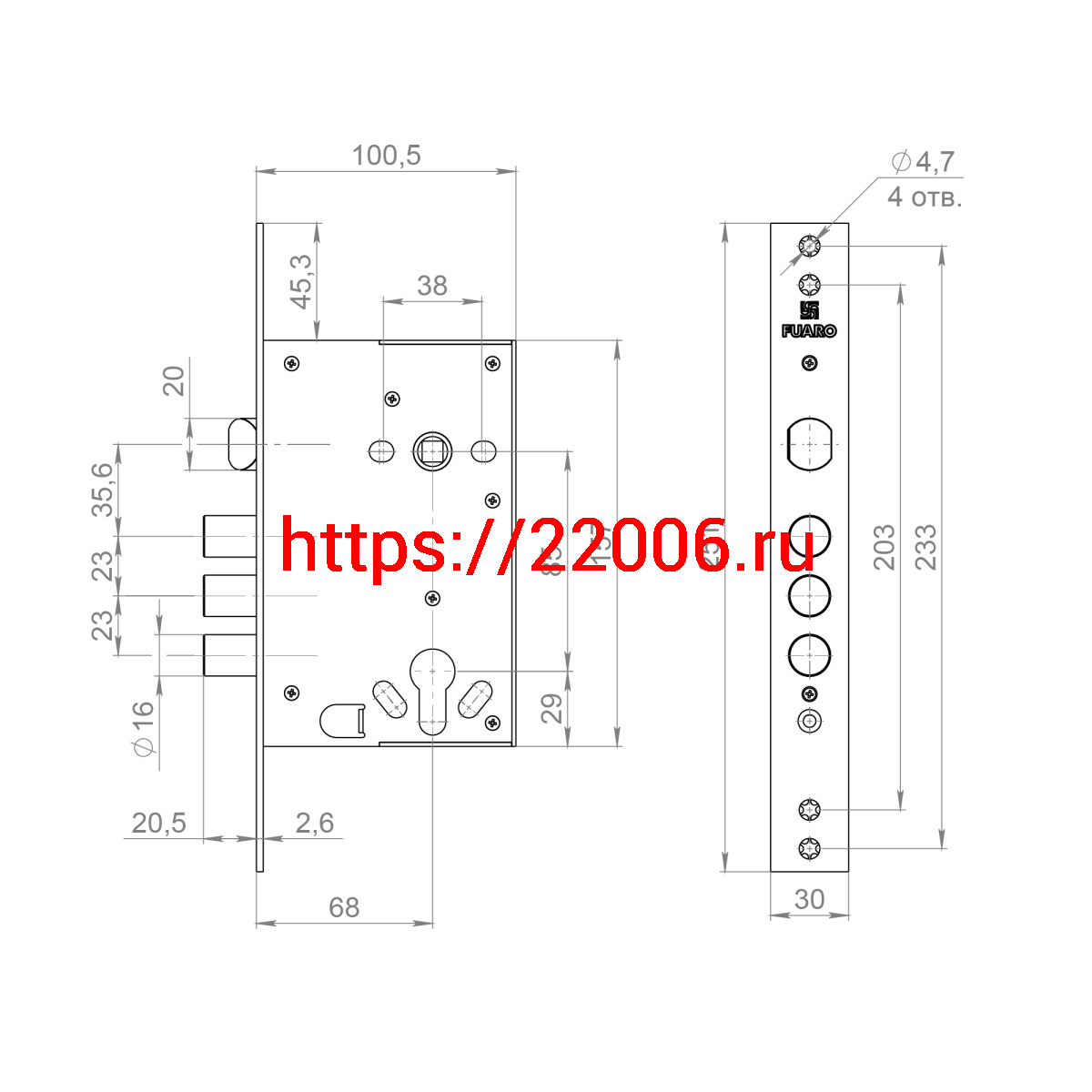 - Корпус Fuaro (Фуаро) врезного замка полуавтоматический с защёлкой MDV32.21/C-65.85.3R16 S/A в Кургане недорого