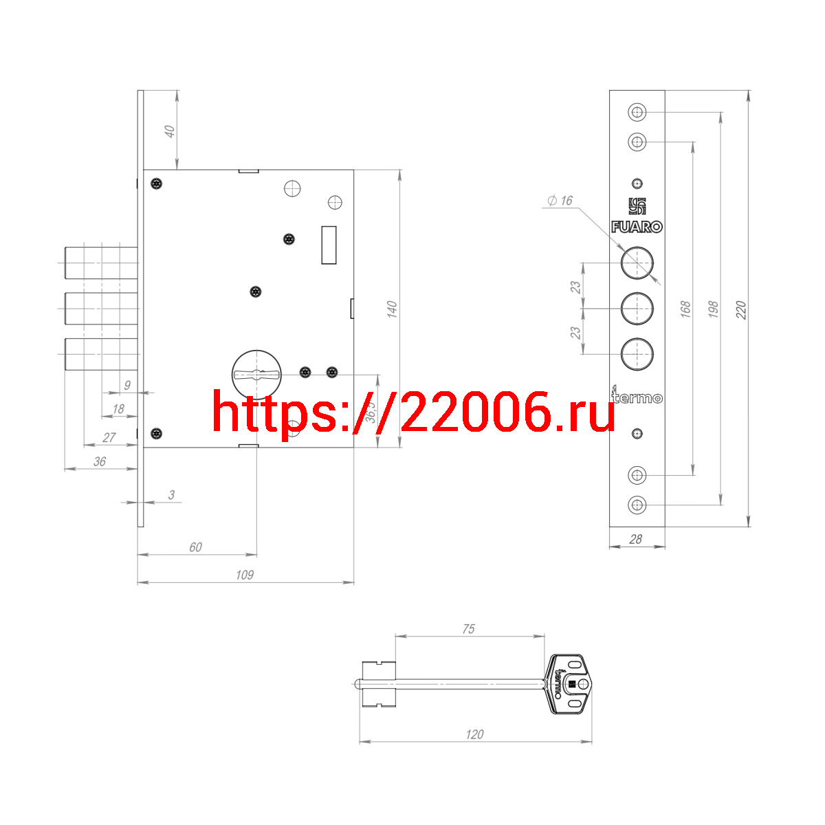 - Замок Fuaro (Фуаро) врезной сувальдный TERMO MDV25/S-60.00.3R16 4 key (ключ удл. 120/75 мм) в Кургане недорого