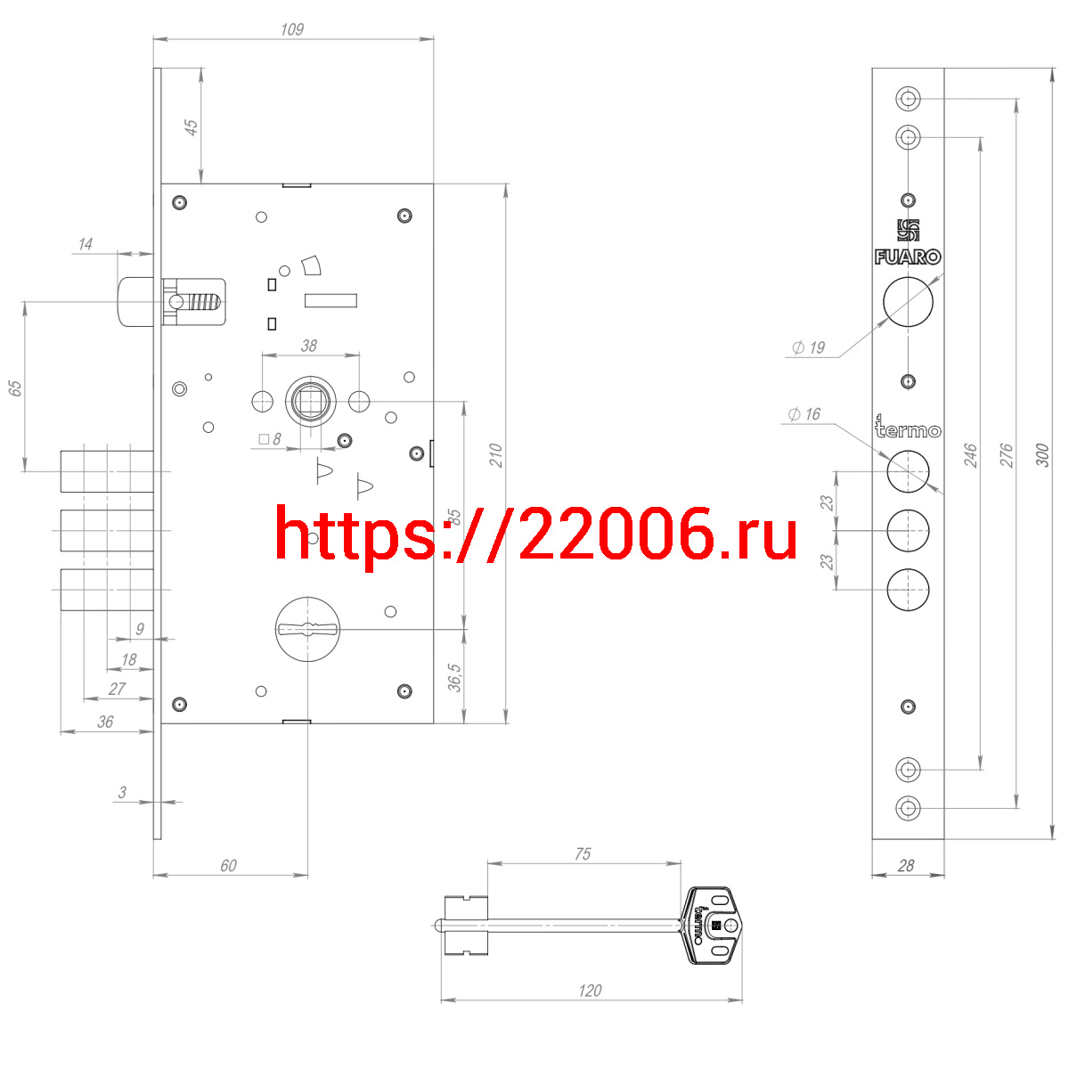 - Замок Fuaro (Фуаро) врезной сувальдный TERMO MDV25/S-60.85.3R16 4 key (ключ удл. 120/75 мм) в Кургане недорого