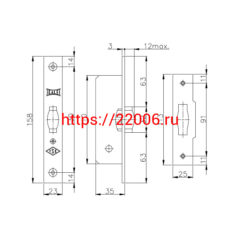 - Защелка Kale kilit (Кале килит) врезная ролик 155/B (35 mm) (никель) в Кургане недорого
