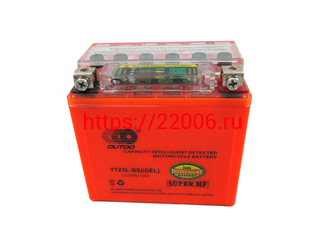 - Аккумулятор OUTDO I-GEL YTX5L-BS (12v/ 5hr) +тестер (114*70*106) 10 в Кургане недорого
