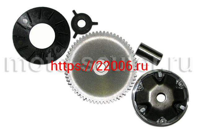 - Вариатор 139QMB 50сс в сборе (ролики, наружный шкив, крыльчатка, палец, храповик) в Кургане недорого