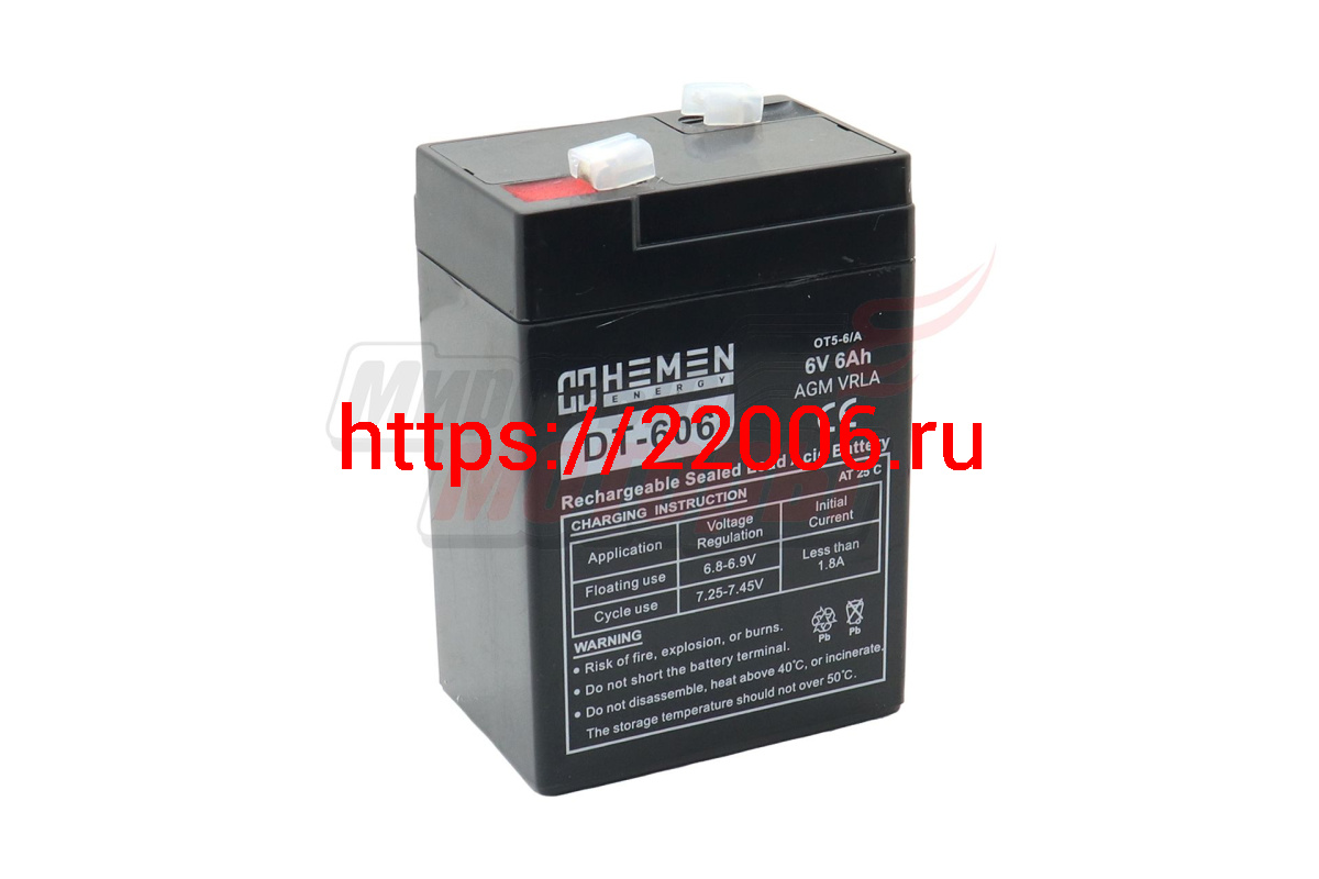 - Аккумулятор герметичный 6В 6Aч HEMEN ENERGY DT606(OT5-6/A)(70x48x100mm)(электромашинки) в Кургане недорого