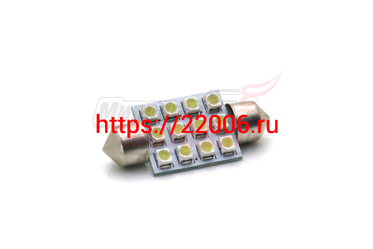 - Лампа 12 В T11х36, 12 светодиодов 3528SMD, двухцокольная, подсветки, белая в Кургане недорого