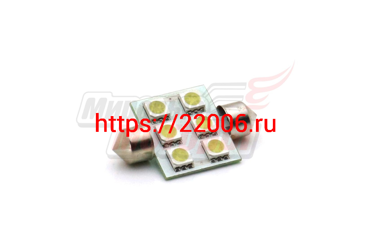 - Лампа 12 В T11х36, 6 светодиодов 5050SMD, двухцокольная, подсветки, белая в Кургане недорого