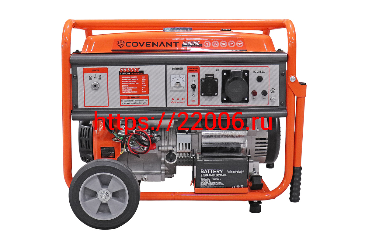 - Генератор бенз. "COVENANT" GG8000E (6,0/6,5кВт, LT190F, 15л.с., бак 25л, 86кг, электростартер, МЕДЬ) в Кургане недорого