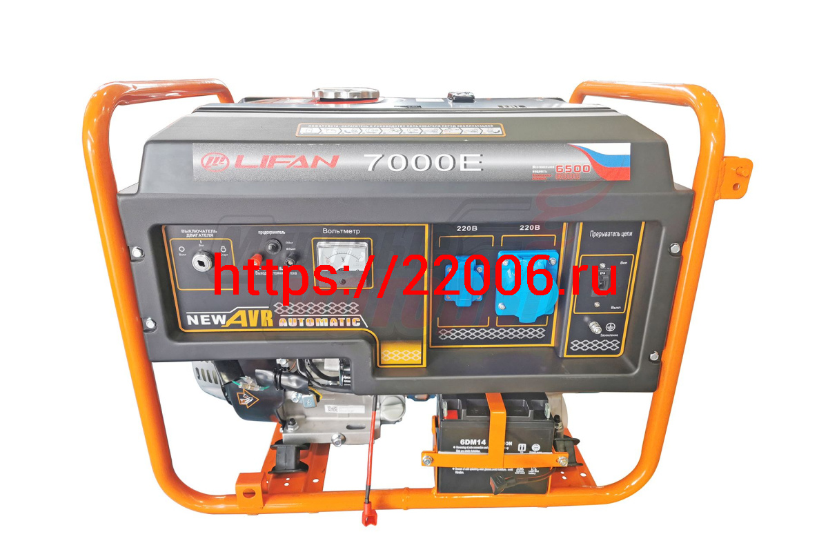 - Генератор бенз. "LIFAN" 6GF-4(LF7000Е)(ном.6кВт,макc.6,5кВт, 4т.,15л.с.,бак 25л.,электростартер, медн.обм.альтернатора, AVR, жк табло, колеса, АКБ) в Кургане недорого