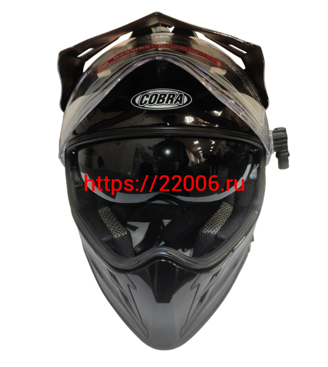 - Шлем кроссовый со стеклом (туринг) СНЕГОХОДНЫЙ COBRA EC H331, черный, с ПОДОГРЕВОМ ВИЗОРА, размерXXL в Кургане недорого