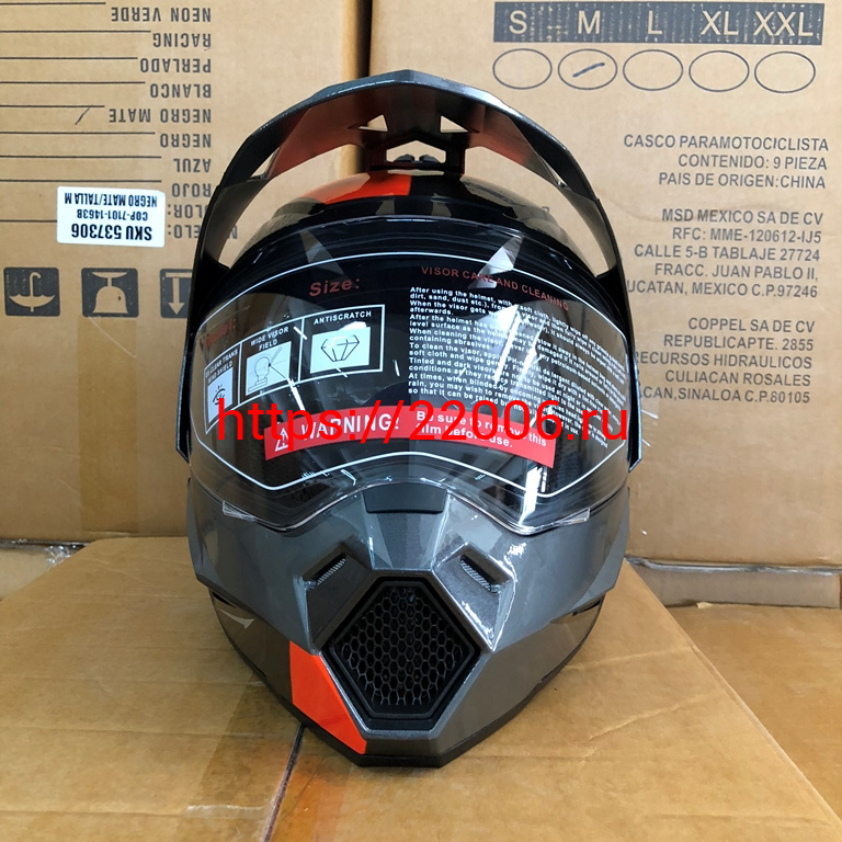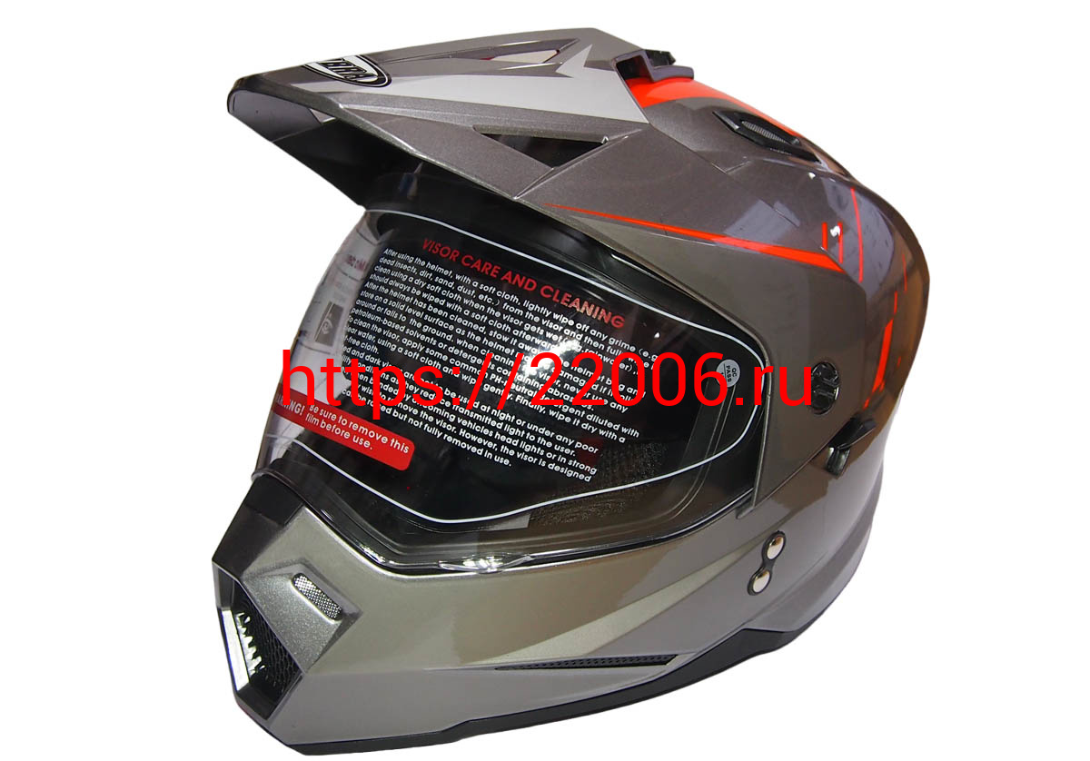 - Шлем туринг (кросс со стеклом и очками) COBRA JK802, серо-оранжевый, размеры M в Кургане недорого