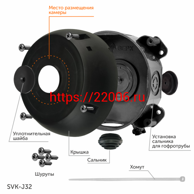 - SVK-J32 (Пластик, цвет ,Черный, IP66) монтажная коробка круглая в Кургане недорого