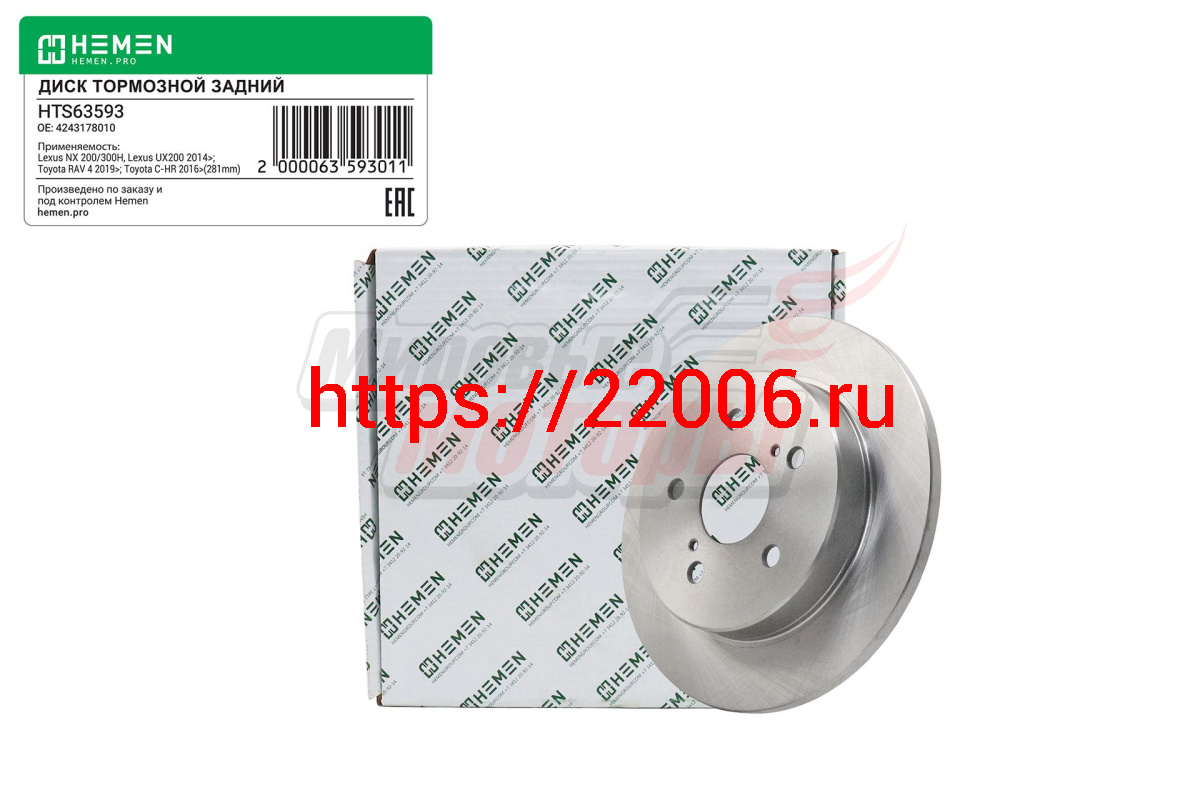 - Диск тормозной задний LEXUS NX200, UX200, TOYOTA С-HR 16-, RAV4 V XA50 18-, диам. 281 (HTS63593) в Кургане недорого