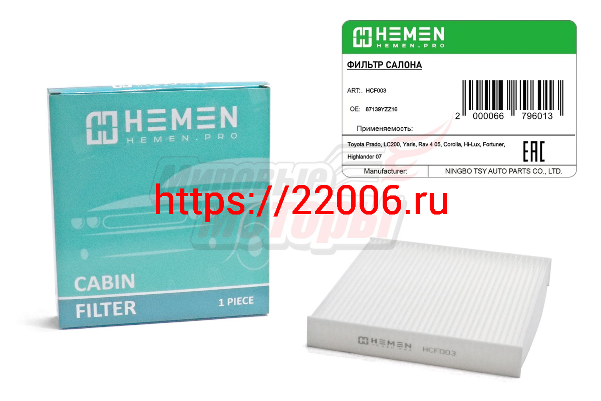 - Фильтр салона Toyota Prado, LC200, Yaris, Rav 4 05, Corolla, Hi-Lux, Fortuner, Highlander 07 (HCF003) в Кургане недорого