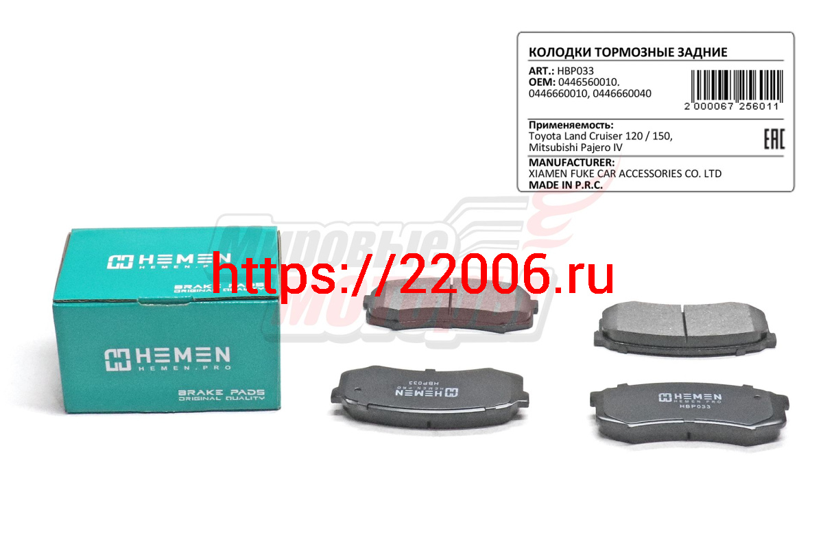 - Колодки торм. зад. диск. Toyota Land Cruiser 120, 150, Prado, Mitsubishi Pajero IV (HBP033) в Кургане недорого