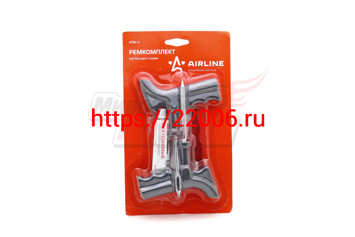 - Набор для ремонта бескамерных шин (шило, игла,клей-активатор, жгуты 5 шт) AIRLINE ATRK-3 в Кургане недорого