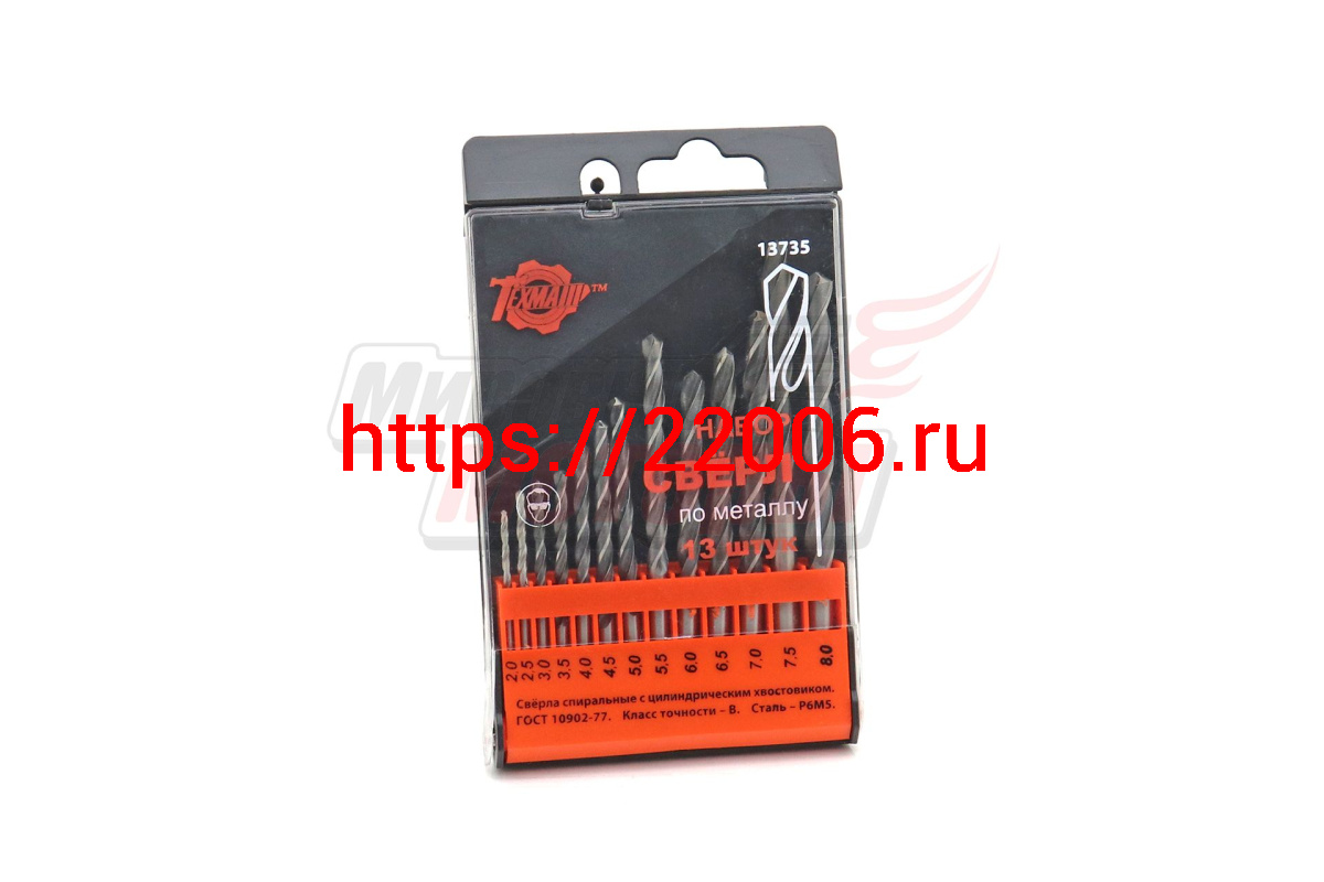 - Набор сверл по металлу 13шт (2,0-8,0мм) пл. футляр в Кургане недорого