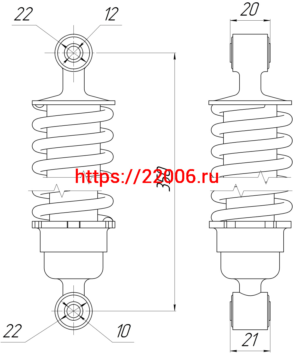 - Амортизатор Alpha зад. хром (L-350,D1-22,d1-12, Н1-20, D2-22,d2-10, Н2-21) ДОРОГОЙ (длинный стакан) в Кургане недорого
